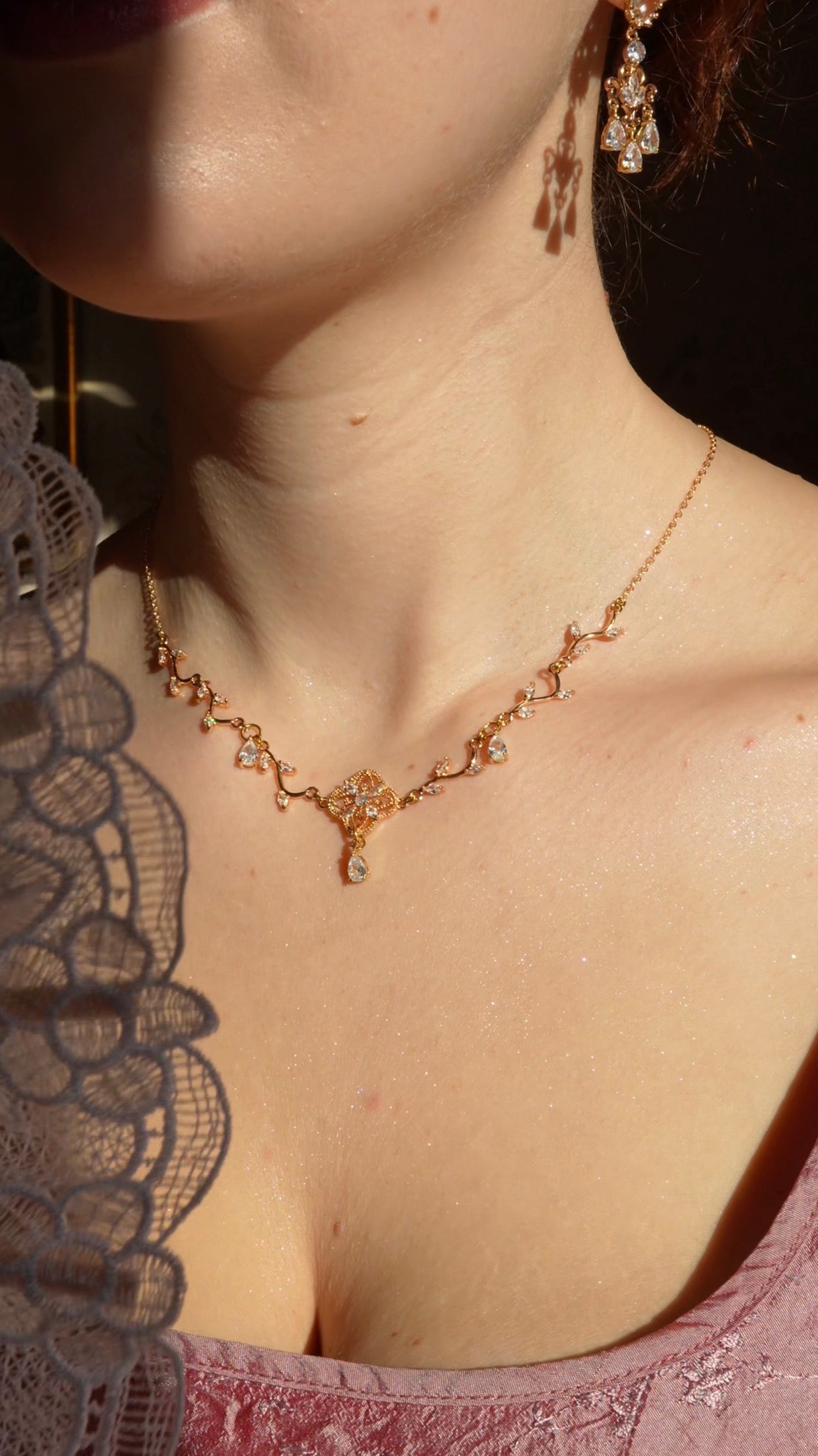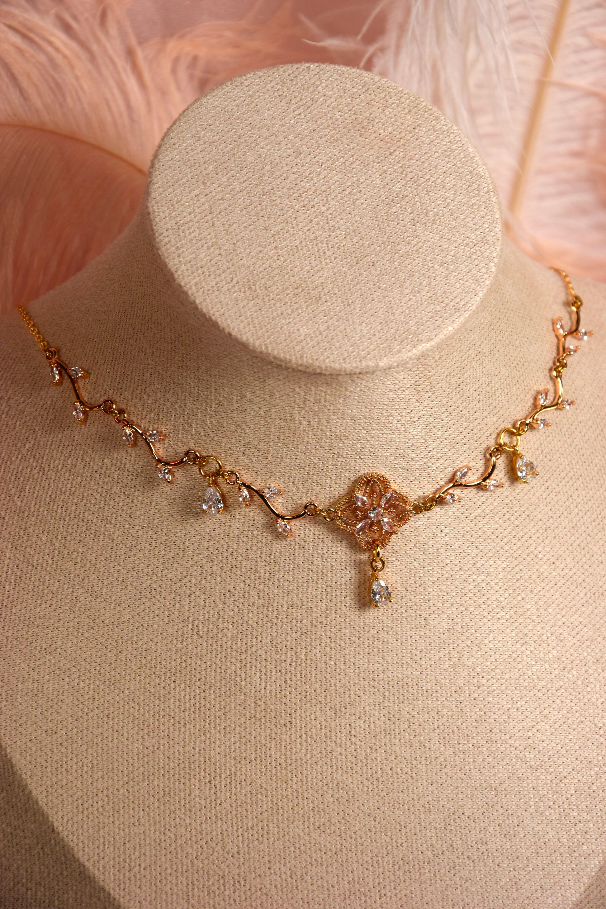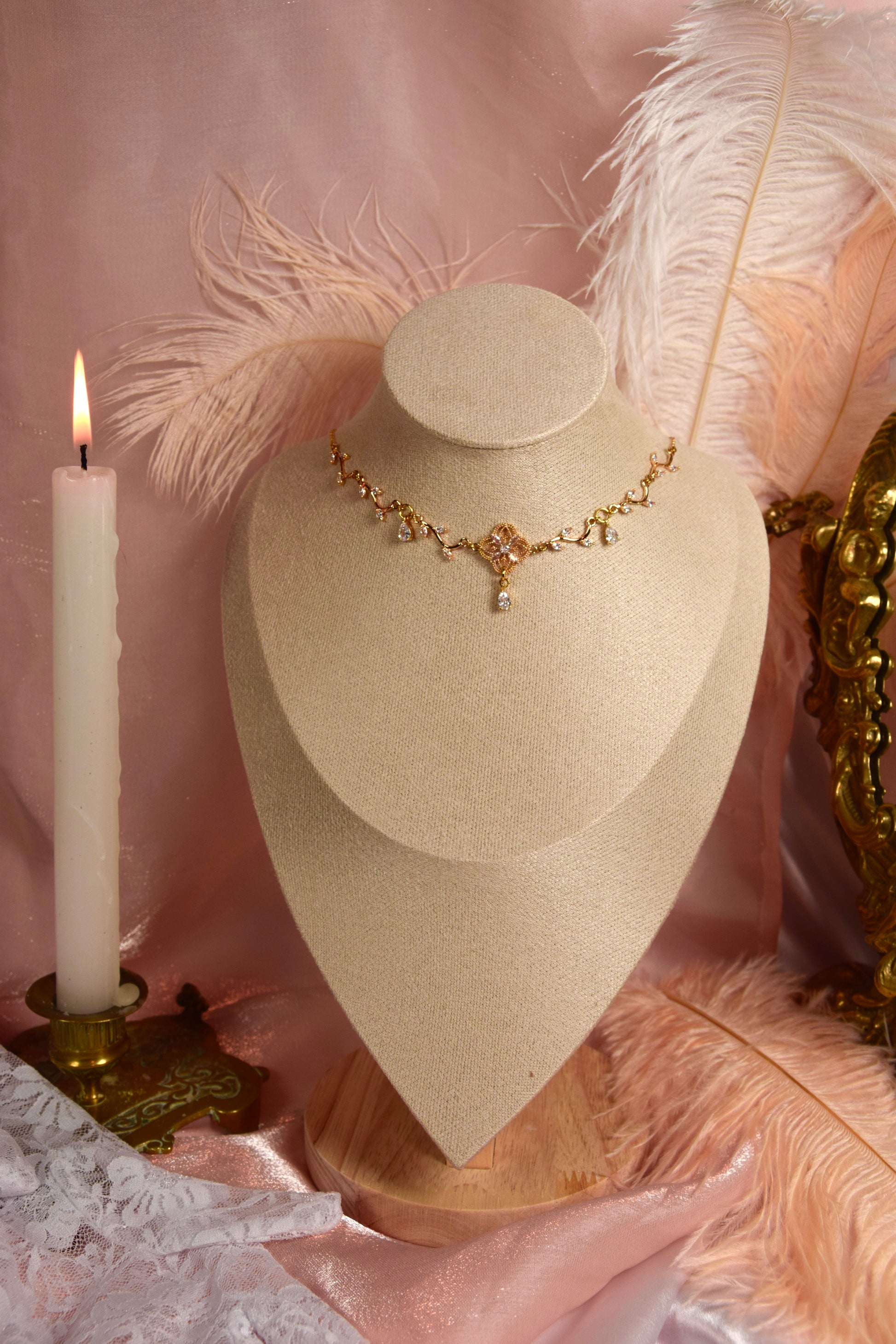 Cette pièce est faite de laiton doré à l’or fin 18k ou d’argent selon la version, et de zircon couleur Diamant.