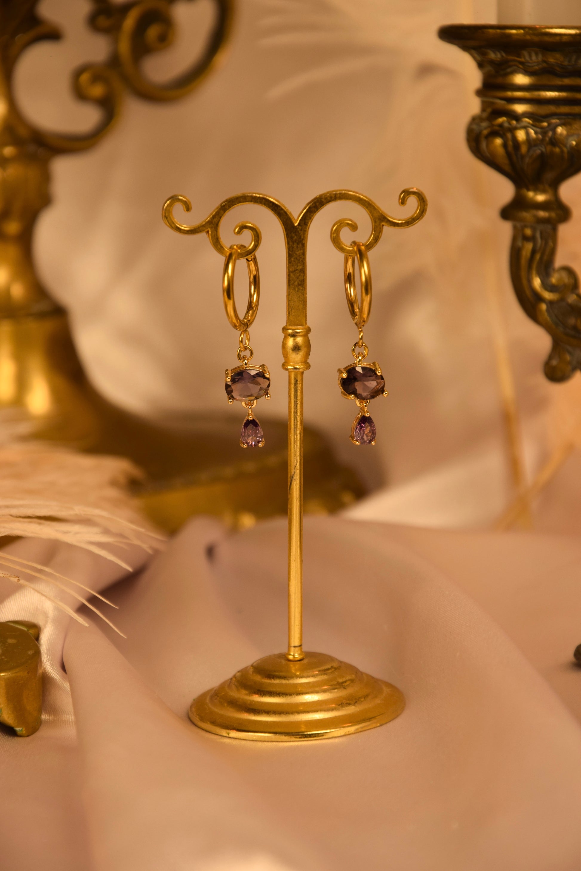 Cette pièce est faite de laiton doré à l’or fin 18k, ainsi que de zircon couleur Améthyste et Diamant.