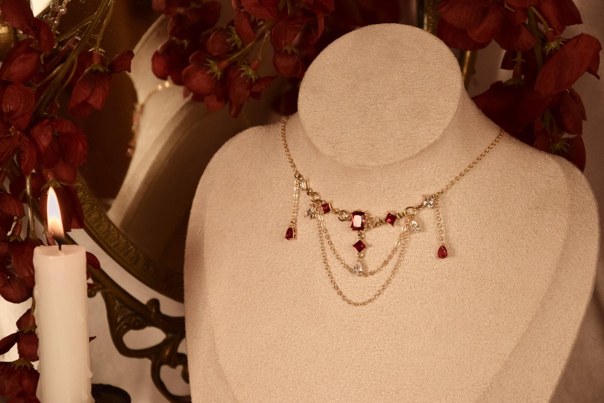 Ce collier fait parti de la collection limitée Carmilla, inspirée du roman court fantastique de l'écrivain Joseph Sheridan Le Fanu, paru en 1872.